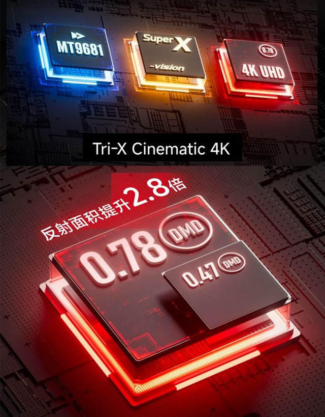 Chip DMD 0,78″ mạnh mẽ có diện tích phản chiếu lớn hơn 2,8 lần so với chip 0,47″. Với máy chiếu XGIMI TITAN tận hưởng chi tiết sắc nét hơn, độ sáng cao hơn và độ tương phản sống động – ngay cả trong phòng đủ sáng.